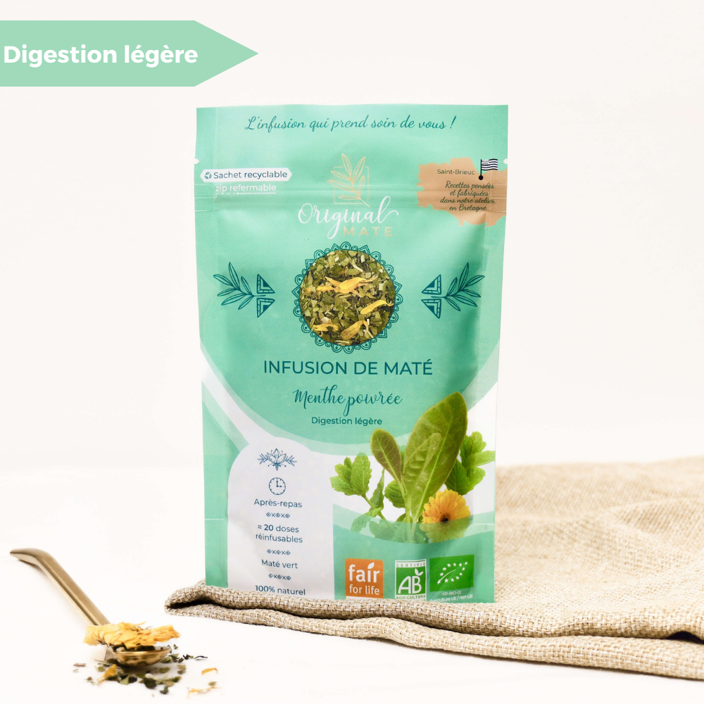 Une des infusions phares d'Original Mate : l'équilibre parfait du maté Bio et de la menthe poivrée Bio.