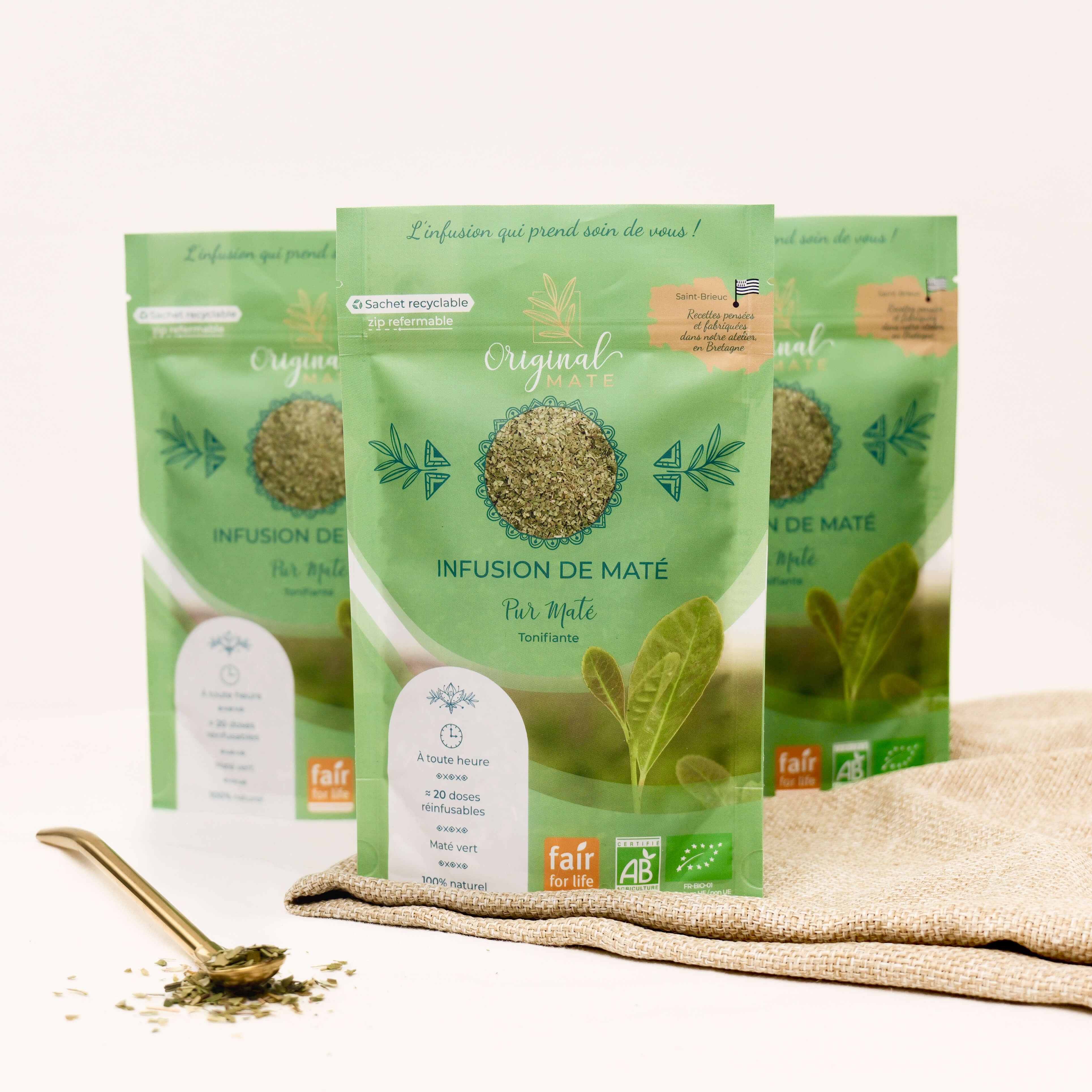 C'est pourquoi, chez Original Mate, nous créons des infusions de maté BIO à base de maté vert (un maté qui n'est pas stationné) que l'on associe à des fleurs, des plantes, des fruits et des épices et que l'on vous propose de consommer comme un thé, soit 2 à 5 grammes par infusion.