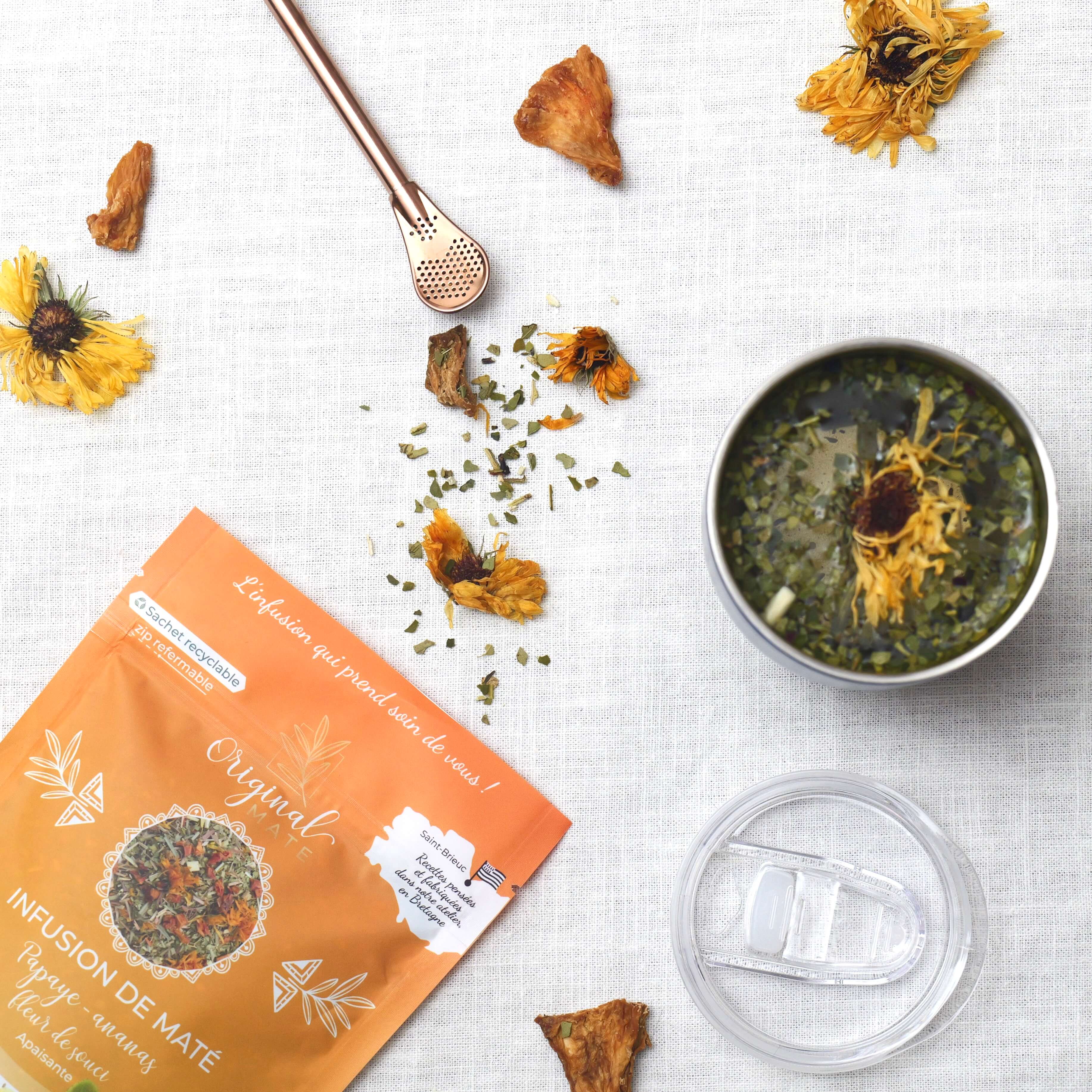 Maté fruité : l'infusion de maté Bio papaye, ananas et fleur de souci.