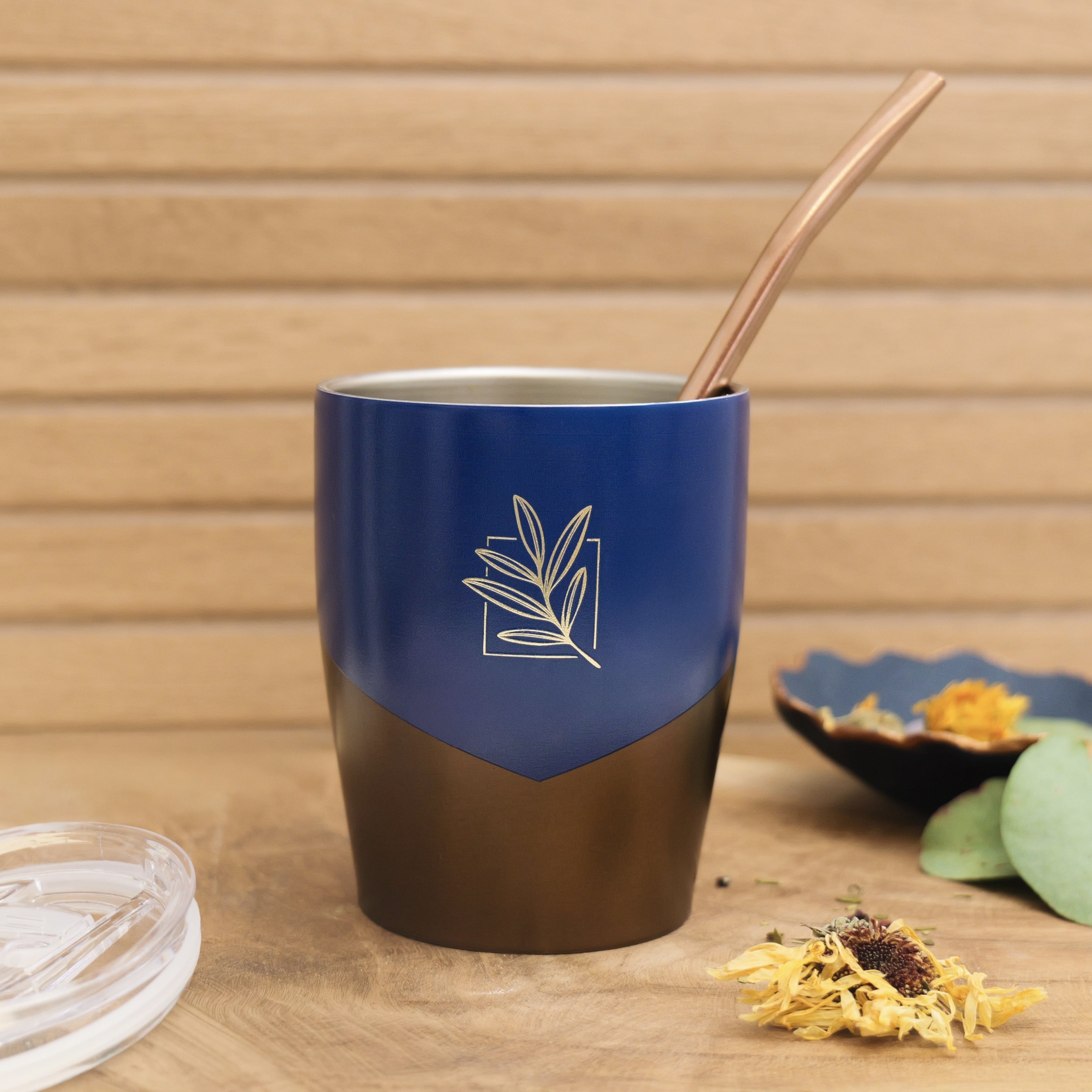 Calebasse isotherme Bleue & Bronze format voyage 25 cl & sa bombilla
