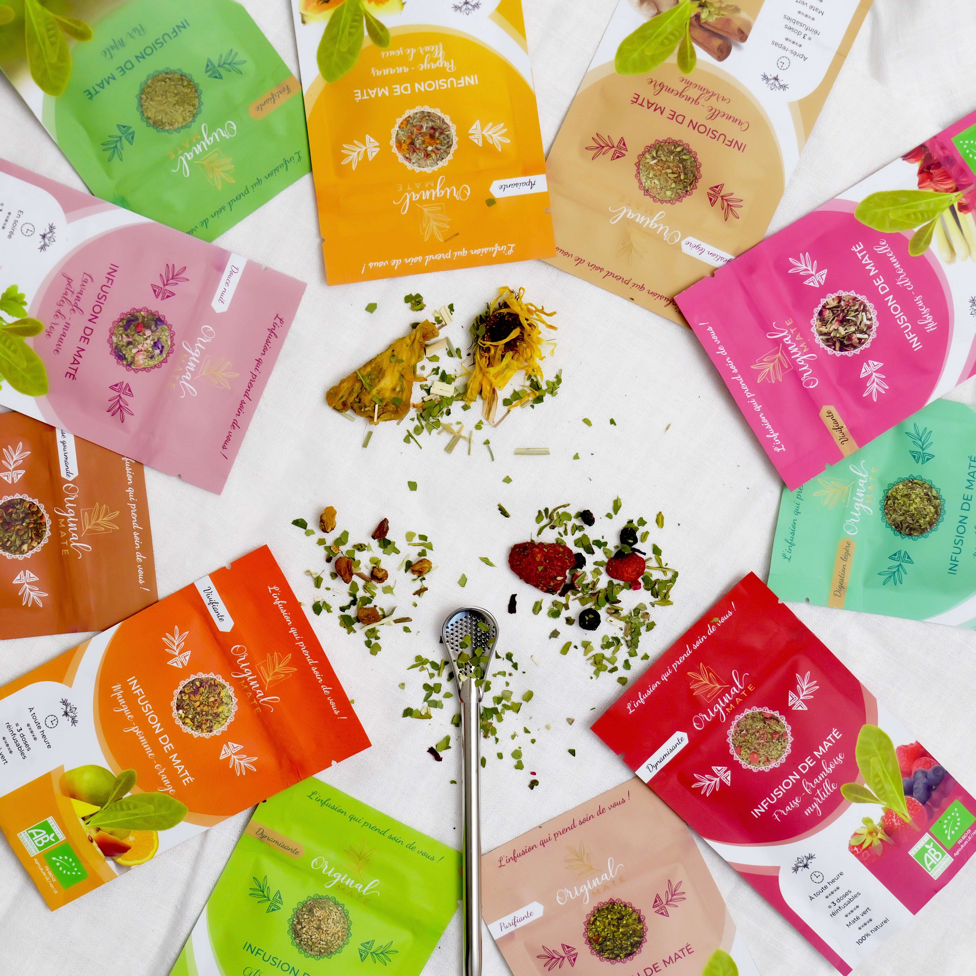 C'est pourquoi, chez Original Mate, nous créons des infusions de maté BIO à base de maté vert (un maté qui n'est pas stationné) que l'on associe à des fleurs, des plantes, des fruits et des épices et que l'on vous propose de consommer comme un thé, soit 2 à 5 grammes par infusion.